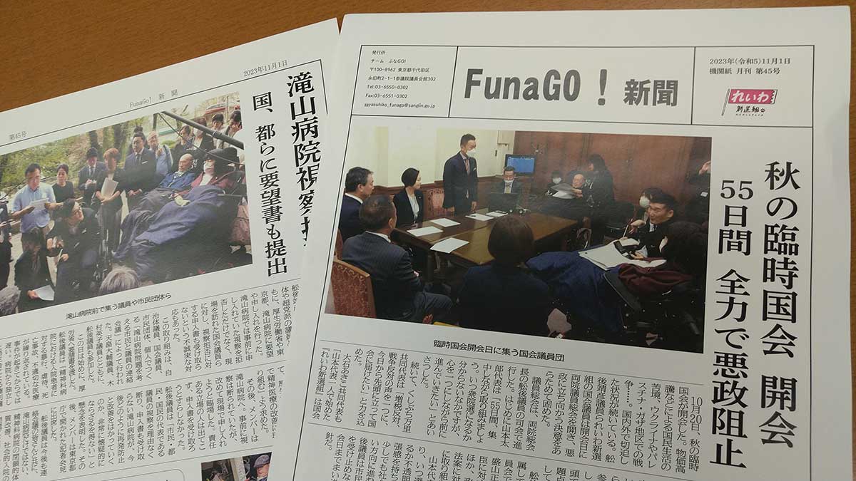 舩後靖彦の後援会機関紙「Funa GO!新聞」第45号(2023年11月号)を発行し、会員の皆様に発送いたしました。