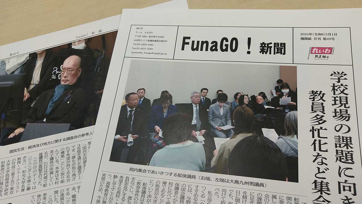 後援会機関紙49号(2024年3月号)を発行しました 2024年3月5日 最終更新日時 : 2025年10月6日 kojio550 舩後靖彦の後援会機関紙「Funa GO!新聞」第49号(2024年3月号)を発行し、会員の皆様に発送いたしました。FacebookXBlueskyCopy