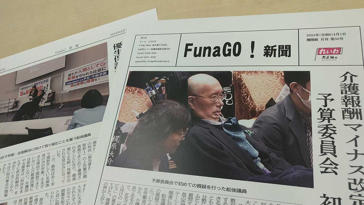 後援会機関紙50号(2024年4月号)を発行しました 2024年4月5日 最終更新日時 : 2025年10月6日 kojio550 舩後靖彦の後援会機関紙「Funa GO!新聞」第50号(2024年4月号)を発行し、会員の皆様に発送いたしました。FacebookXBlueskyCopy